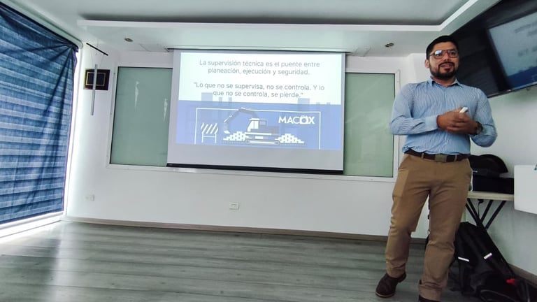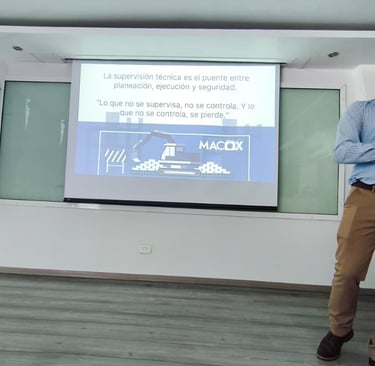 Impartida por Daniel Coxca Marañón y Julián Romario Fuentes Herrera, quienes presentaron la importancia de la gestión administrativa como motor de la obra civil, mostrando cómo los errores en papeleo, reportes y supervisión pueden generar retrasos de meses y pérdidas económicas millonarias. Se expusieron casos reales de duplicidad de tareas, reportes inflados y fallas en expedientes, resaltando que la mayoría de los problemas no son técnicos, sino administrativos.